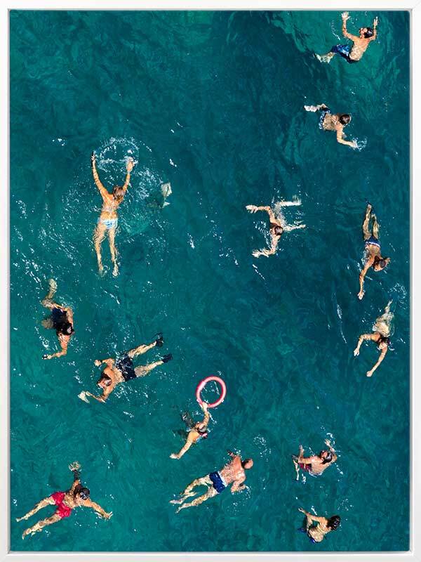 Summertime Floating Art Print – This photographic art print really makes a splash! An aerial view of a group of people frolicking about in the ocean an a gorgeous summer day. The deep blue-green of the ocean really invites you to want to join in on the fun. This fun wall art print will have you longing for those long relaxing summer days and would look great in a blonde timber look box frame. A great addition for your coastal home. THE CURATED SERIES II A handpicked gallery of wall art photography that is daringly and quirky, these photographic pieces are exploding with richness of colour and texture.