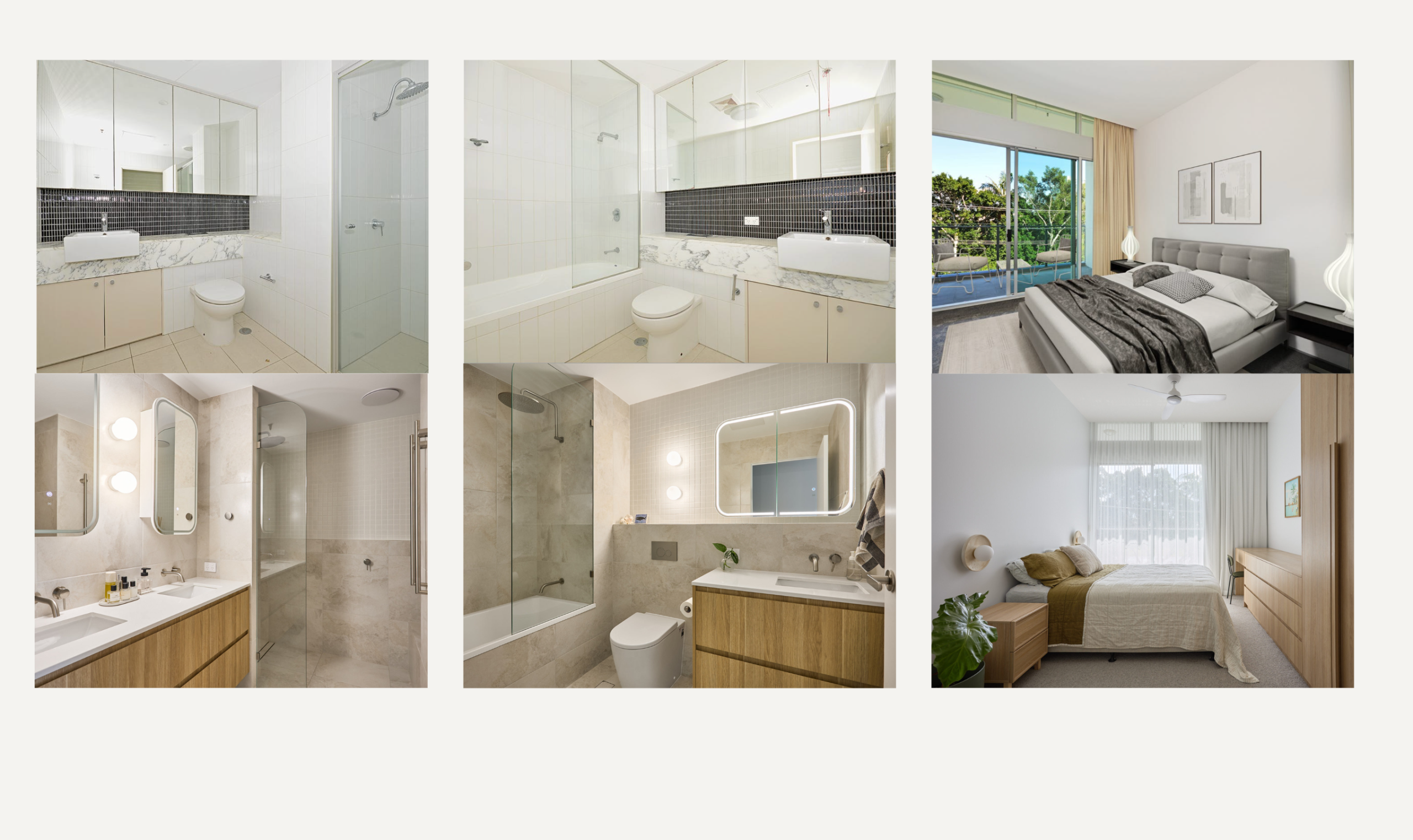 The ensuite was reimagined to feel calm and luxurious, while the two additional bathrooms were also fully renovated. Cleverly, we were able to retain the existing plumbing locations, helping to manage costs without compromising the overall design. Additional mirrored storage cabinets were introduced across all bathrooms, enhancing both functionality and visual flow.