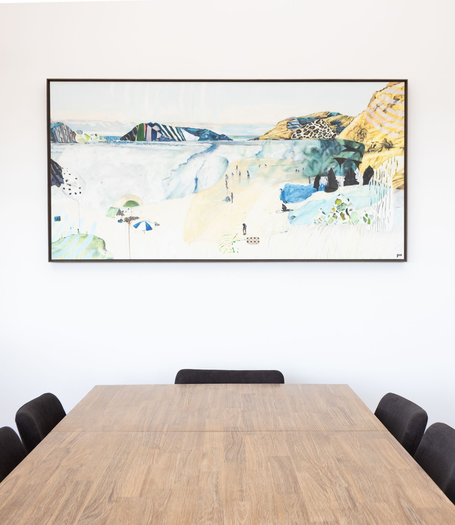 We also had the pleasure of suggesting and purchasing the furniture and soft furnishings We designed the sofas to complement the space and placed the stunning Georgie Wilson artworks to compliment our coastal theme.